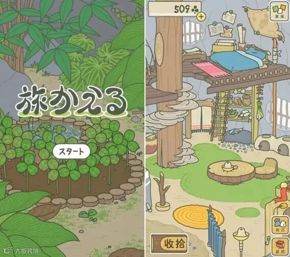 「旅かえる」在日语中“青蛙”和“回归”的读音都是一致的。这也一语双关的表达出游戏的主要攻略:给小青蛙收拾行装,等待它回来。