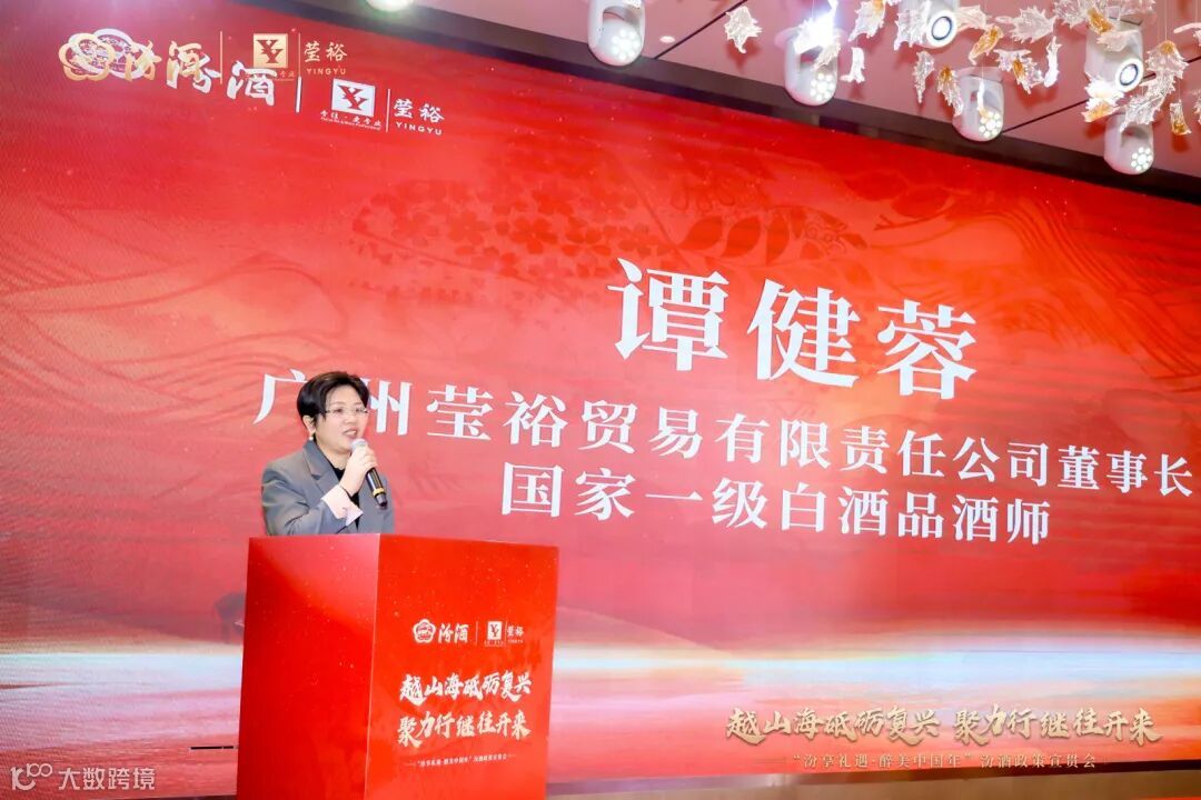 广州莹裕贸易有限责任公司董事长,国家一级品酒师-谭健蓉致辞:谭董事长对各位贵宾的到来表示诚挚欢迎!越山海砥砺复兴,聚力行继往开来!凯歌而行,不以山海为远,乘势而上,不以日月为限。