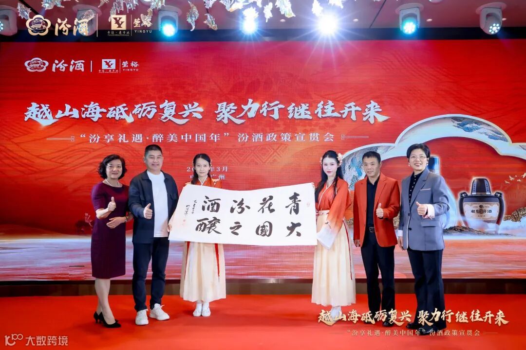“越山海砥砺复兴 聚力行继往开来”——“汾享礼遇・醉美中国年”汾酒政策宣贯会,3月18日在广州市南沙区金隆路金顺喜宴大酒店宴会厅隆重举行.本次参加活动的有:山西杏花村汾酒销售有限责任公司代表广州市城市经理-张怀旺;广州莹裕贸易有限责任公司董事长,国家一级品酒师-谭健蓉 ;广州市海珠区酒类行业协会会长-钟扬;南沙街道商会会长梁巨峰;广州市南沙区政协委员,广州市南沙区体育联合会会长赵蓉蓉;等嘉宾。特邀嘉宾:国家一级美术师、中国艺术家协会南方艺术创作中心理事-曾明珠上台现场书写字画;同时参加的有:厂家和南沙区终端核心客户200余人。