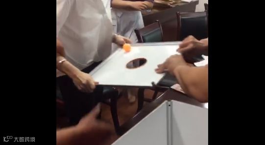 见此情形,其他竞标单位的代表们也冲到前台,要求工作人员解释粘在箱盖上乒乓球是怎么回事。于是就出现了视频中,多人争夺箱盖的那一幕。随后,这场招投标活动被迫中止。