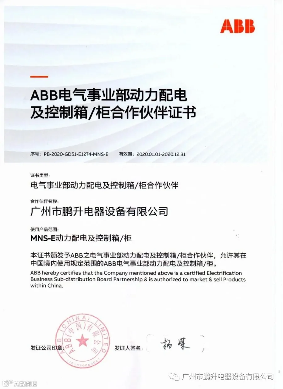 广州市鹏升电器设备有限公司是ABB低压配电箱、施耐德的PRISMA IPM配电箱成套厂授权生产厂家,与海格电气珠三角、中建三局配电产品、中核集团等多家知名企业建立了长期稳定的战略合作伙伴关系,并多次被评为“A级合格供应商”。