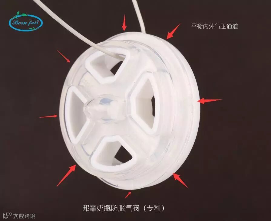 优点:目前多通道防胀气奶瓶,带有防胀气阀门装置体积小,防胀气效果好,奶嘴没有何回气孔。易清洗,不漏奶,有效防止宝宝打嗝、吐奶、腹痛。