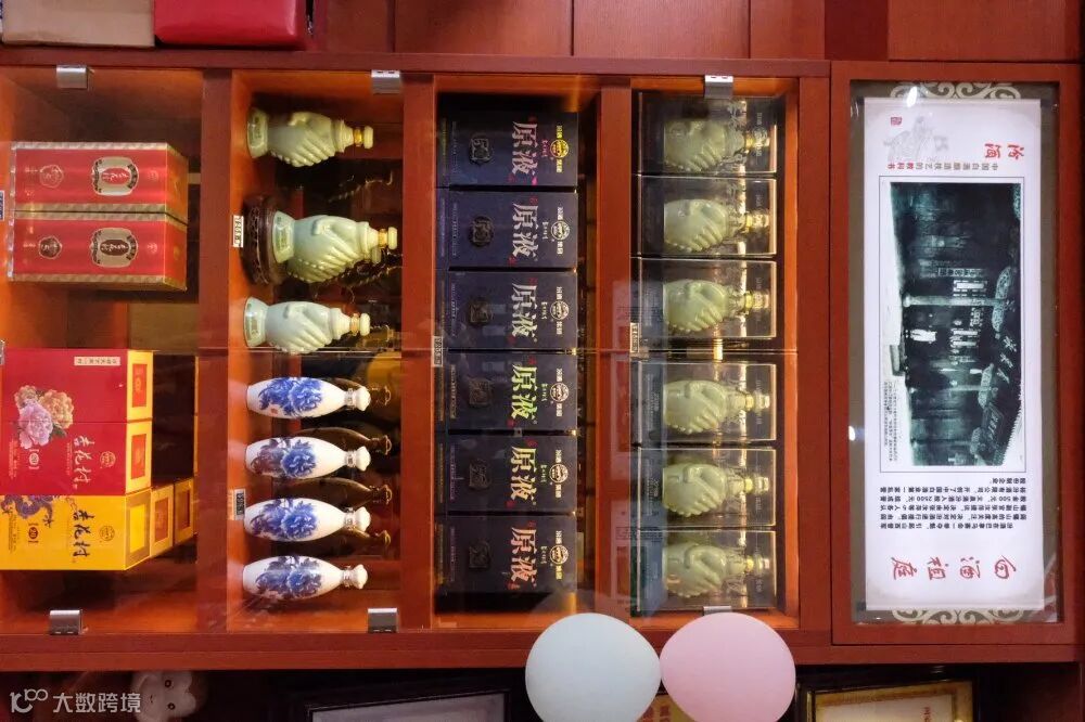 汾酒集团握手原液酒和青花原液也整齐陈列在店内
