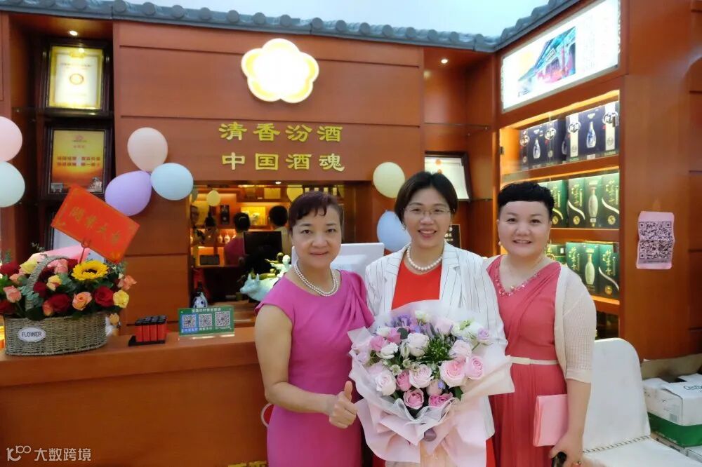 广州市旗美裕酒业的三位董事谭健蓉女士,姜丽女士,苏丽梅女士共同出席旗下公司的汾酒新店开业盛典。