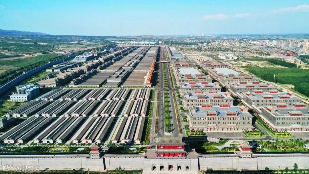 汾酒城占地4.5平方公里,相当于两个平遥古城,仿古建筑面积158万平方米,相当于十个北京故宫。