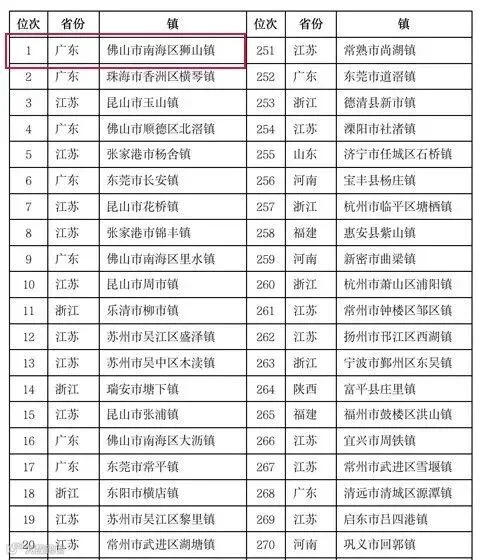 狮山镇位居2022镇域高质量发展500强榜单第1位