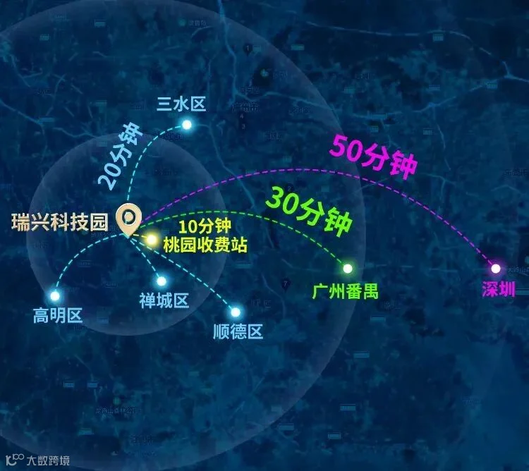 瑞兴科技园占位粤港澳大湾区黄金交通枢纽。畅享5条高速公路、广佛城际轻轨、佛山高铁、北江西江水道、广州白云国际机场等大型交通网资源,无缝接驳粤港澳大湾区,强大交通辐射力,商务极速与世界连通。