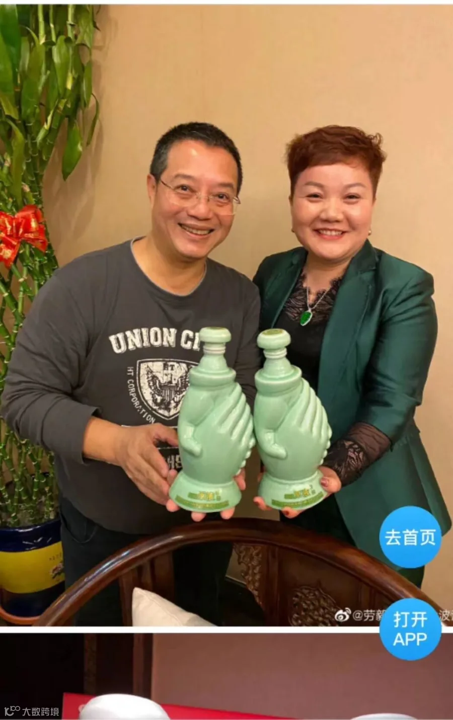 今朝有酒今朝饮,握手酒饮后不上头。一喝握手酒,从此是朋友。酒到浓时,大家文采飞扬,不断脱口而出各种与握手酒有关的精彩短句,并主动拿起握手酒瓶与之合影留念。