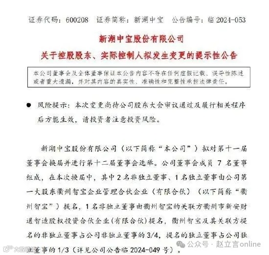 面对困境,黄伟不得不采取一系列措施。从2023年起,新湖中宝原控股股东新湖集团陆续向有衢州国资背景的企业转让股权,累计金额超过了50亿元。经过几次股权转让后,这些企业成为了新湖中宝的第一大股东。
