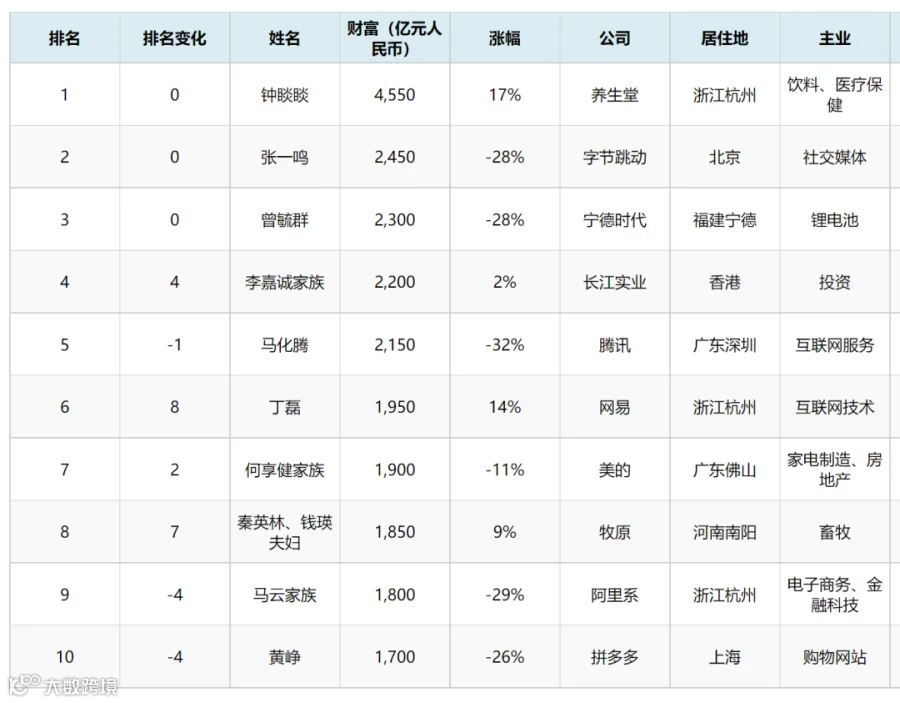 上榜人数增加,财富值缩水
