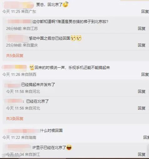有人认为,“贾总已经回国了”,但也有人认为,“其微博不是本人在管理,就是找个北京的小弟在发”。