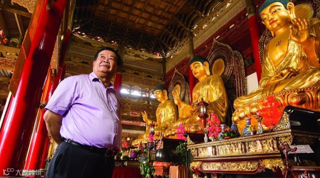 ▲曹德旺在他捐资修建的崇恩禅寺大雄宝殿内。佛教六度之忍辱、布施、精进、持戒、般若、禅定,也是这位“玻璃大王”的人生信条