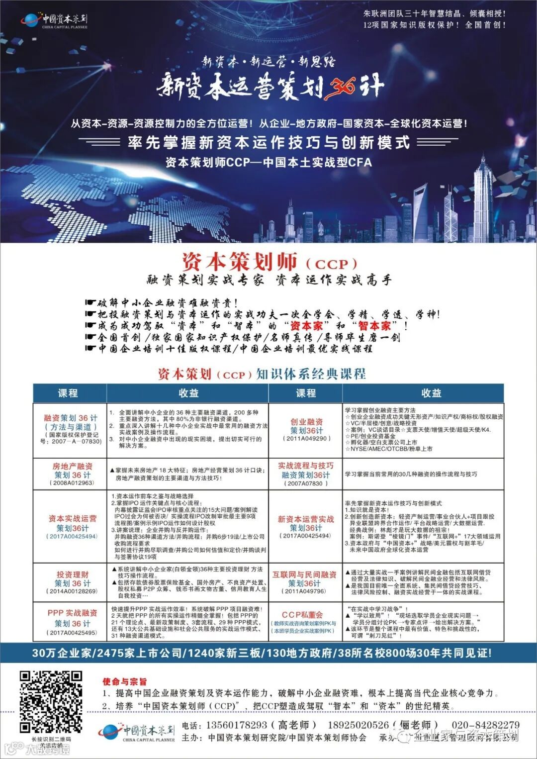 资本策划师核心课程《新资本实战运营策划36计》9月开讲