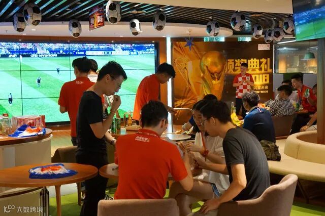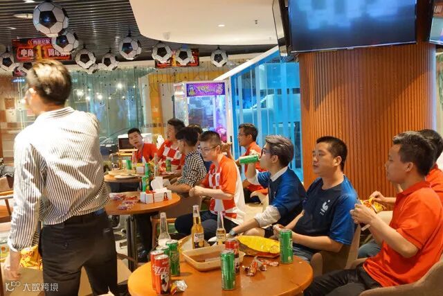 大家欢聚一堂观赛直播,大家分为两个阵营,有人为法国呐喊,有人为克多利亚欢呼。这一刻,不管是不是球迷,世界杯的激情已将大家融为一体!