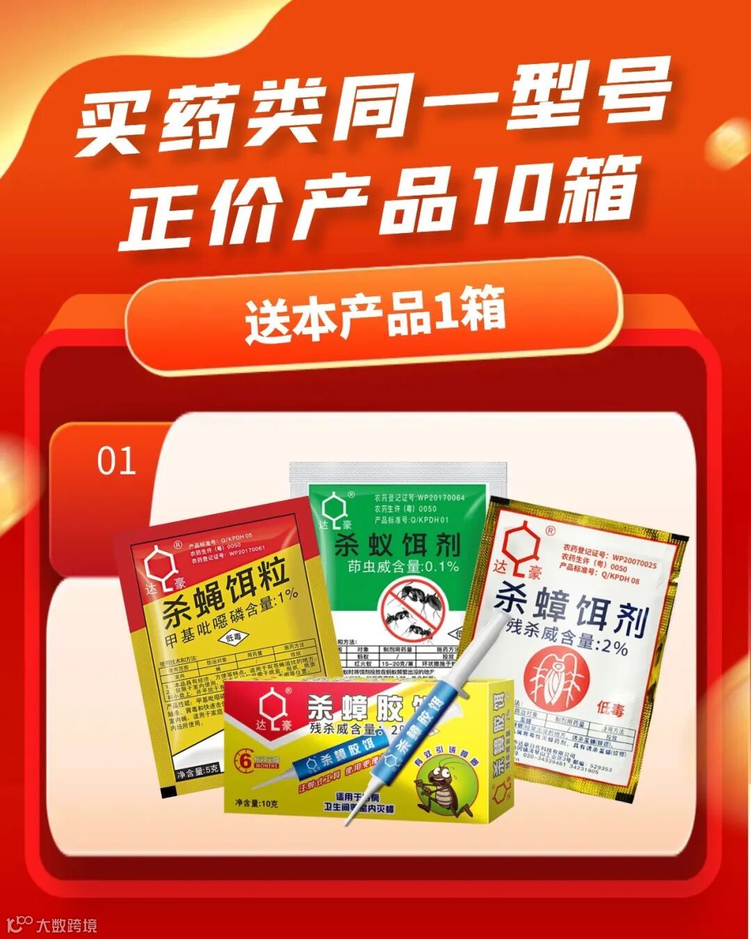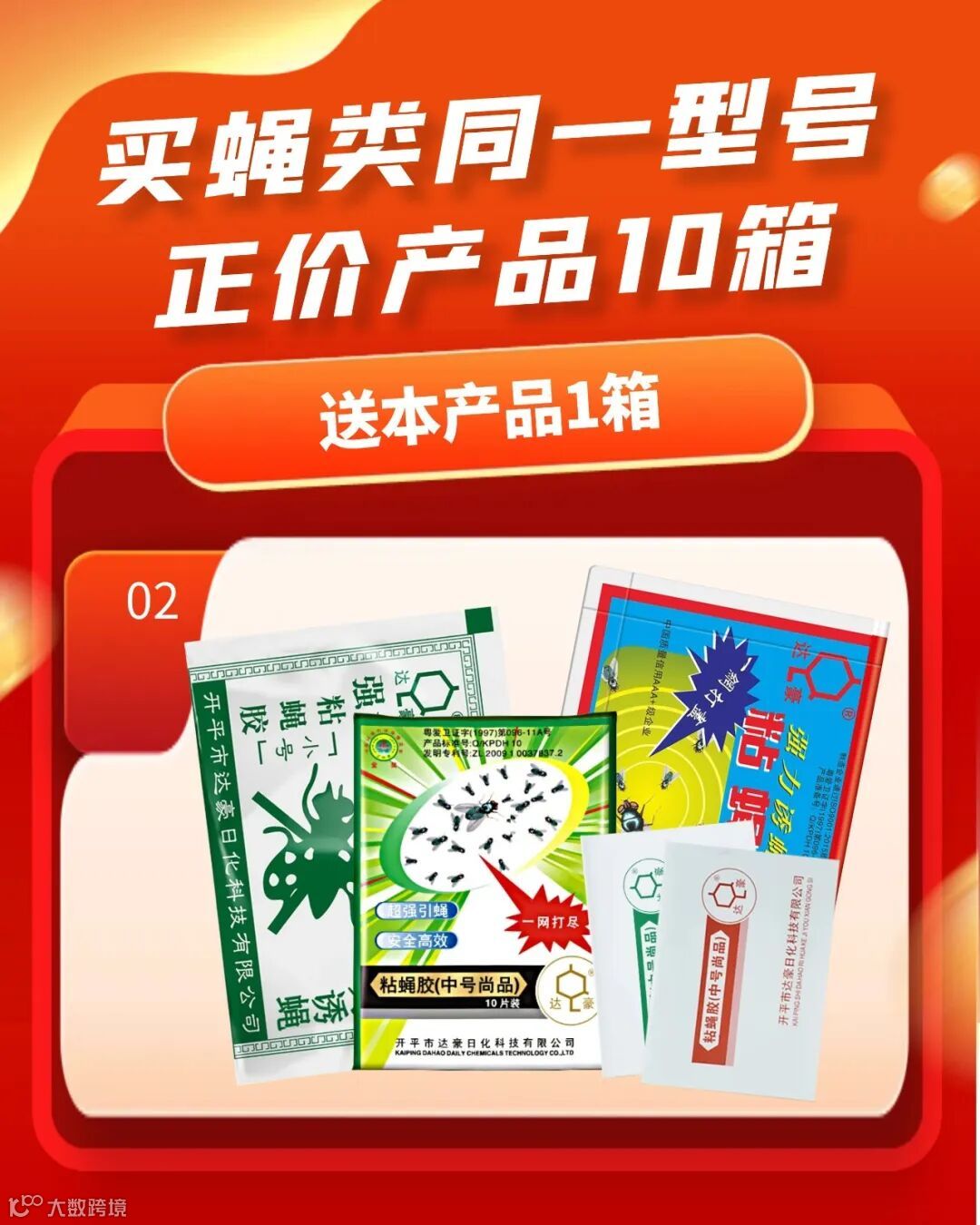 ★一次性在达豪商城订购(蝇类)同一型号正价产品10箱,即送本产品1箱,买20箱送2箱,以此类推,上不封顶。