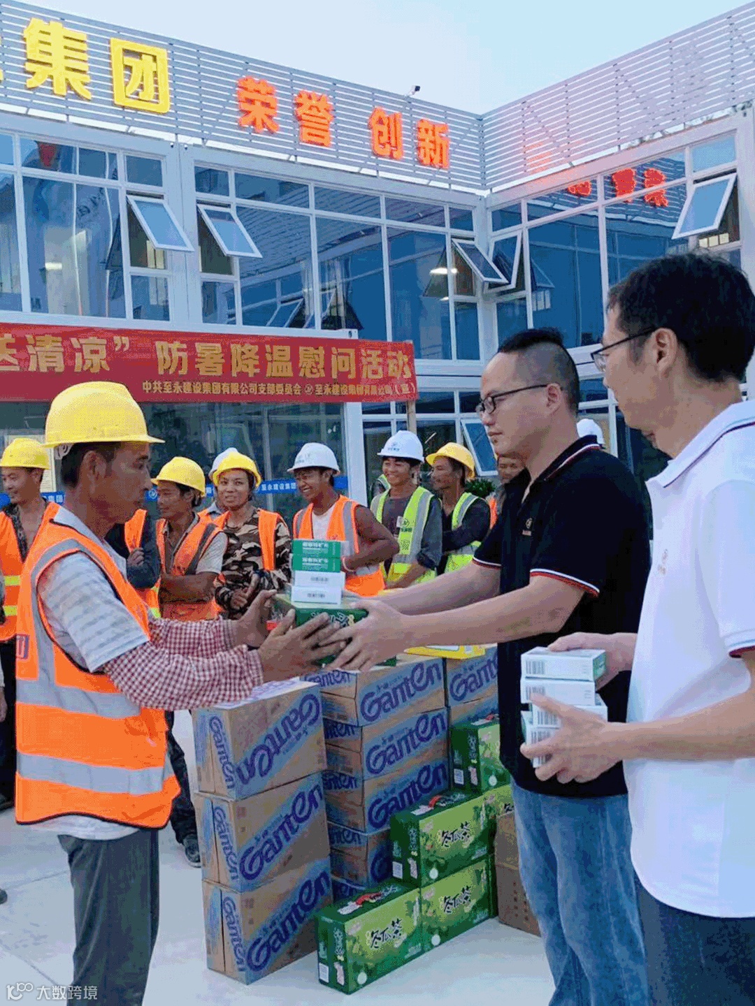 此次活动,集团为项目组员工送去大量矿泉水、桶装水、凉茶、藿香正气水、清凉蔬果等防暑降温物资。