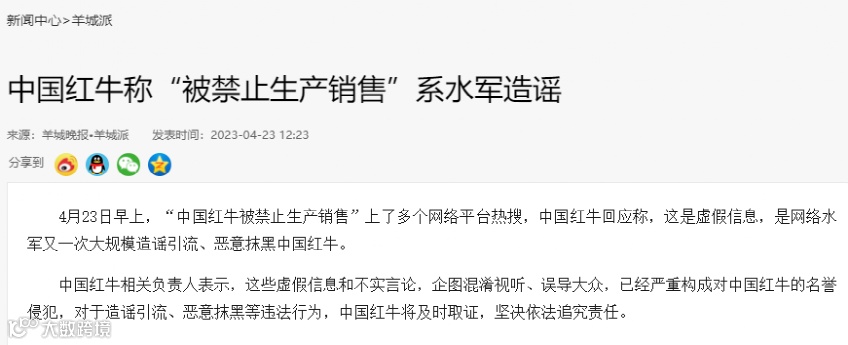 4月23日,“中国红牛被禁止生产销售”上了多个网络平台热搜!