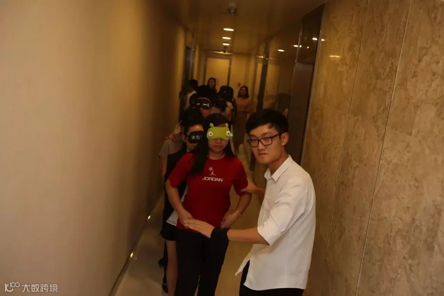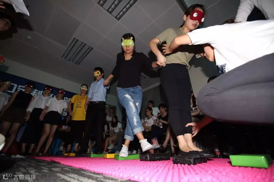 在整个游戏过程中耗时最久的便是这一个“万人过桥”的关卡。队员们完全不知道自己脚下的路该如何走,该跨大步还是小跨步,踌躇不安。这时候领路人只有关注到团队中的每一个人,多些耐心,多点指引,并且给予全组队员足够的信任,才能够及时消除队员心中的不安,更快速的到达终点。