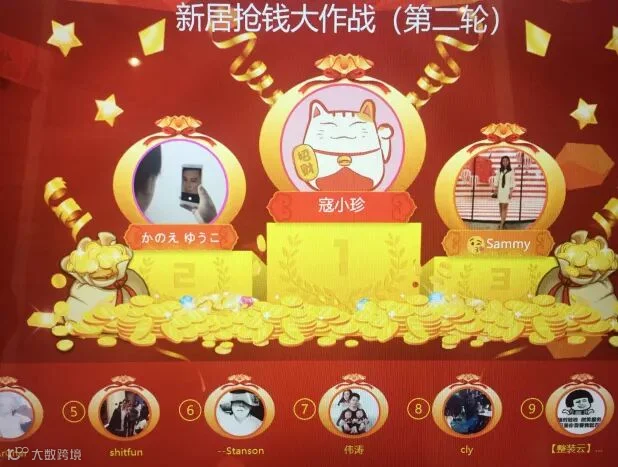 游戏环节接近尾声,吃瓜群众着急了,纷纷向主持人抱怨自己拼命举手都没被选中游戏,主持人微微一笑,一个响指,屏幕切换成了全员参与的抢钱线上游戏。小珍经理在我还没来得及反应的情况下就赢得了游戏排名第一!第一可是有100枚印花!!!这手速让我预感拍卖会就是她的天下啊!