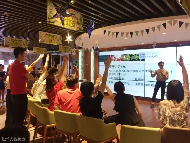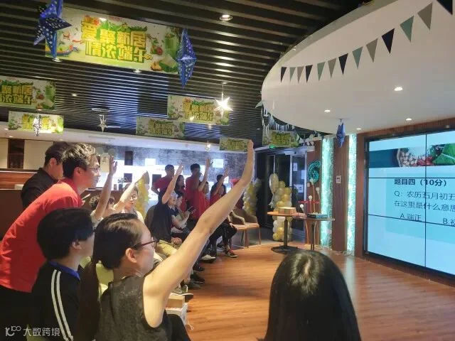 主持人话语还没落,大家就开始疯狂举手,快到模糊,不过规则是抢答再答题,答错还要扣分,想要拿小印花可没有那么容易,除了端午的常规问题,既然还问到了展厅的布置有多少根气球柱哦,看来平时也要多多留意小细节才能赢得更多印花。