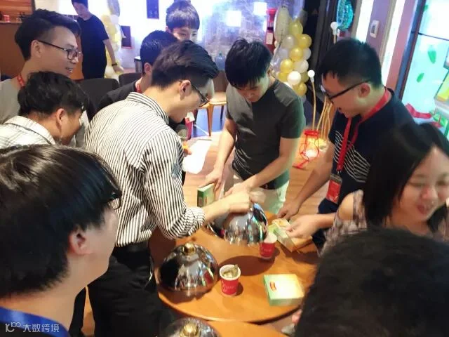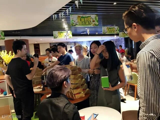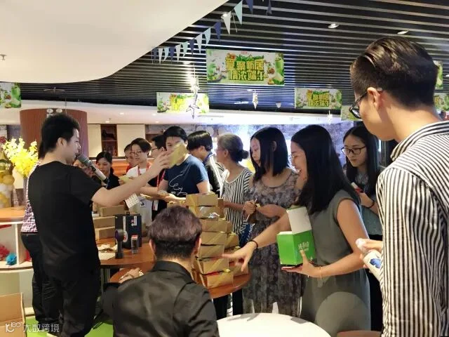 以为只是简单的大胃王游戏?打开盖子的一瞬间,我留了一滴猪泪,是我太小看策划部了,盖子里面是大小不一的粽子、皮蛋、青团、绿豆糕...抽到皮蛋的同事差点哭晕在舞台上。主持人现场加码,除了抽中的食物,每人还需要解决一盒青团哦,看来今天的晚饭是肯定吃不下了。