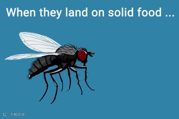 所以,1秒钟的时间,苍蝇只需在你美味的食物上踩上那么1脚,就能留下身上的病毒,更可怕的是,苍蝇吃喝拉撒都是可以同时发生的。也就是说,看起来苍蝇只是搓了搓手,停留了短暂的几秒钟,但它们已经完成了一系列的细菌传播工作。