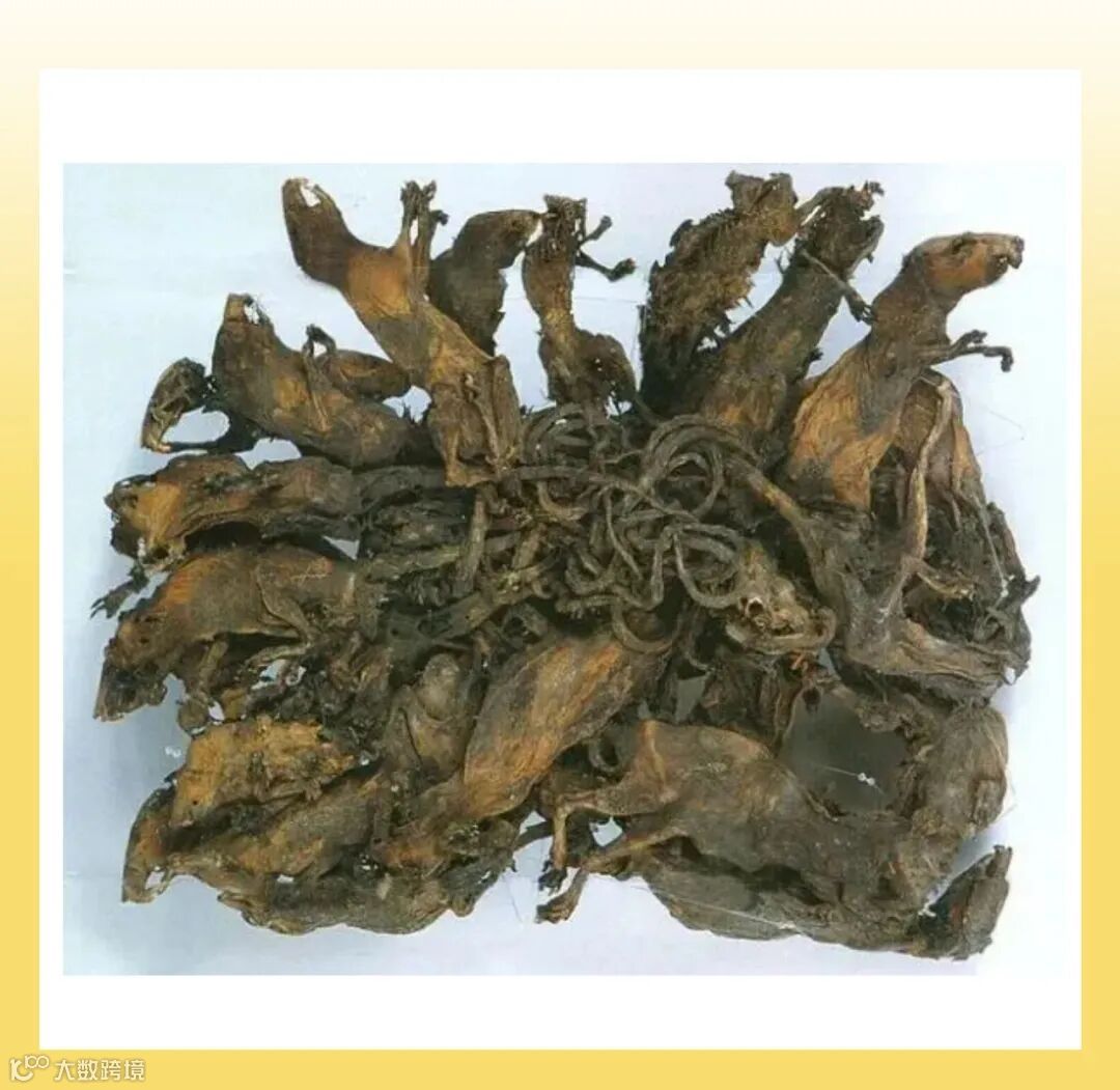 有史以来最大的“鼠王”标本,共有32只老鼠。发生在1828年,在德国的一个小镇上,有一家面粉厂发生了一场火灾,人们在废墟里发现了一个超级大的鼠王,一共有32只老鼠的尾巴缠绕在一起,就像一个巨大的老鼠球,至今它们的标本还被保存在德国阿尔滕堡博物馆。