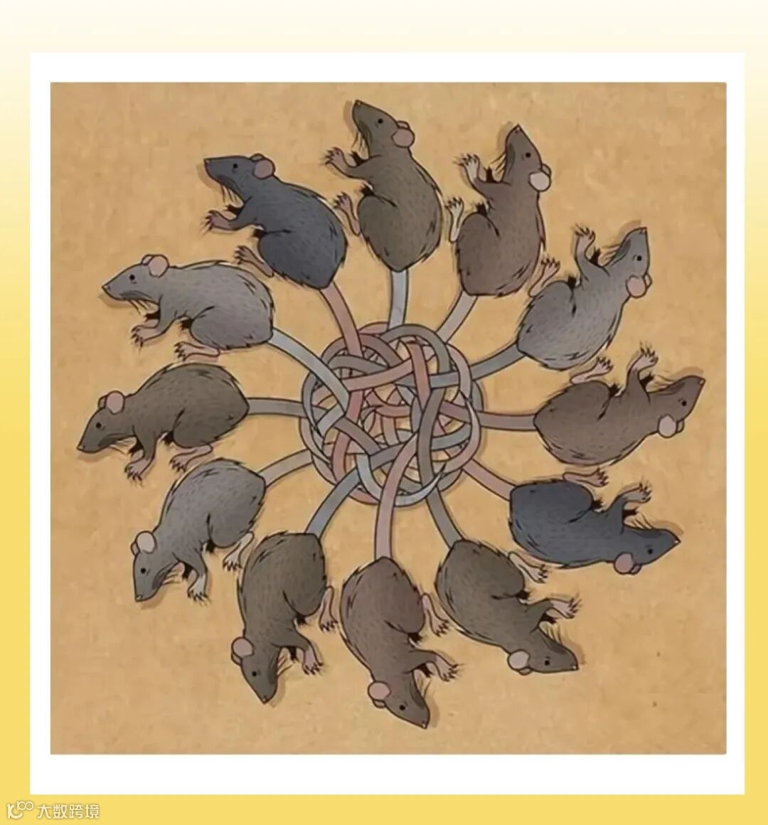 因为老鼠繁殖能力强,食物充足的情况下子孙数量会十分庞大,黑家鼠生活的地方对人类不怎么友好,各种黏糊糊的东西很多,再加上老鼠的尾巴比较灵活,于是就打结了。