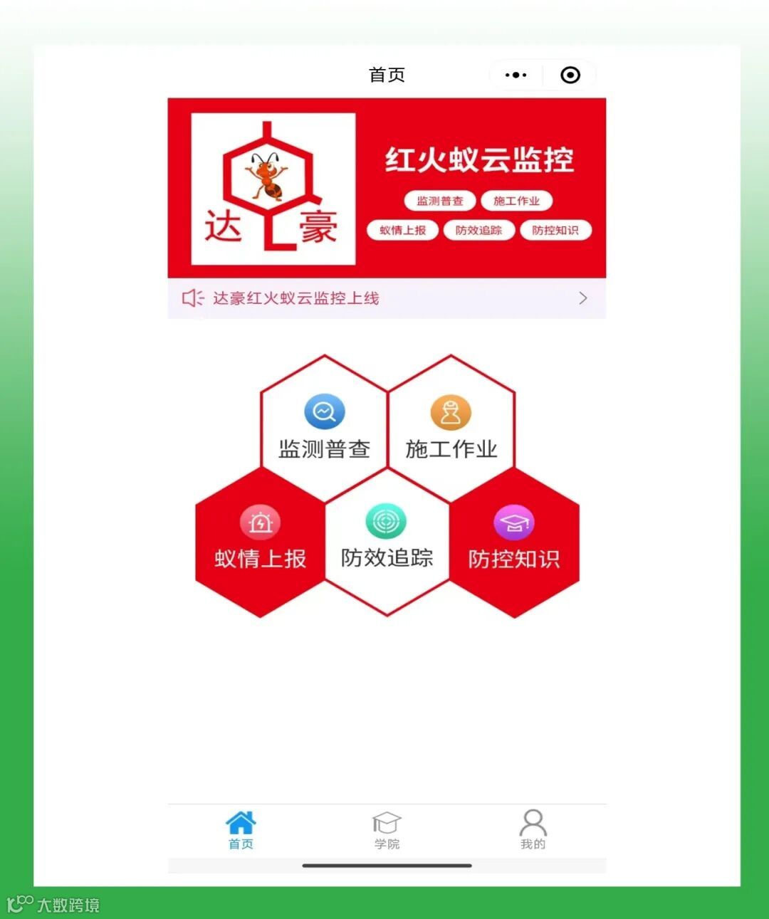 自主研发红火蚁云监控小程序,实现实时精准监测,配备无人机施药。并且研制出安全、稳定、高效的红火蚁防治药剂,解决了化学药剂农药毒害与绿色环保难以有效协调的技术难题。