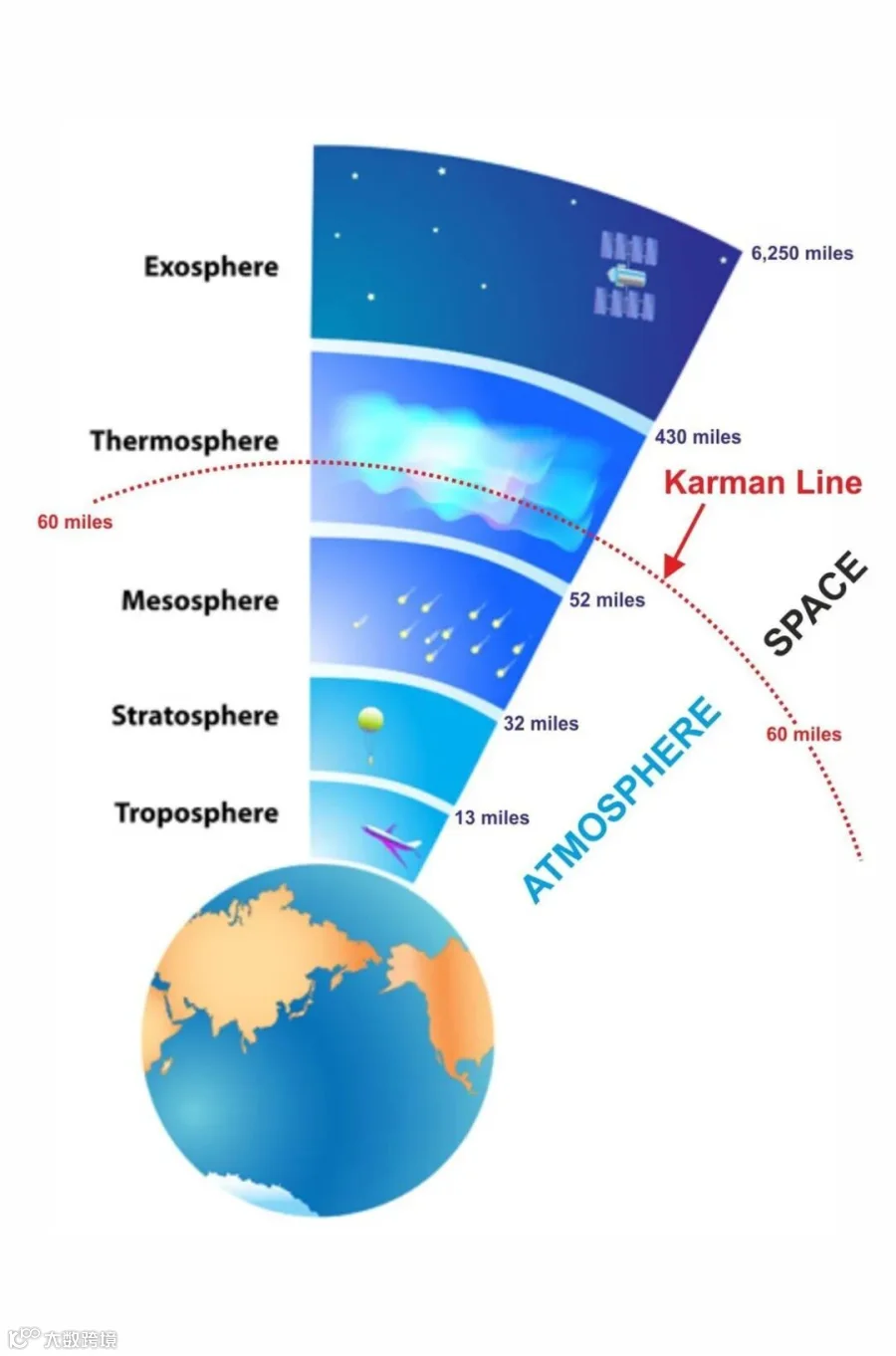 地球大气层可分为5层,自地表起垂直向上依次为:对流层、平流层、中间层、热层和外逸层。除了起飞和降落,民航飞机一般都在平流层底部飞行,也就是说,飞行的高度大约在8000~12000米之间。