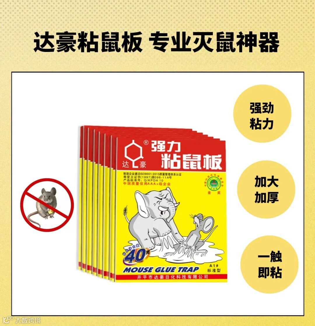 选择粘鼠板推荐达豪品牌,37年专业灭鼠,加大加厚鼠板、强力粘胶、强力生物引诱,每一项对老鼠来说都是致命的。只需要将鼠板放对位置,就能将它们一网打尽!