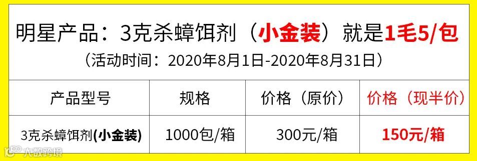 可享受半价购买杀蟑饵剂(小金装)150元/箱,