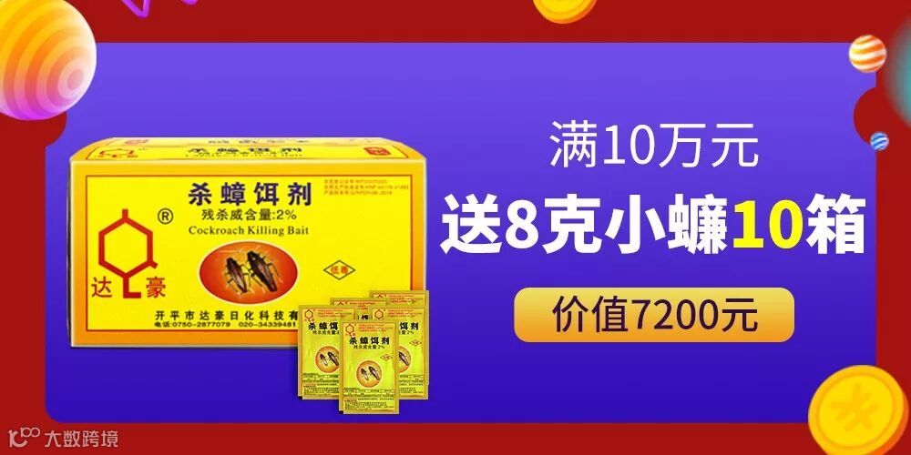 5.本次活动期间每单一客户一次性出货达豪任意产品达10万元(不做累计),加赠8克金装杀蟑饵剂10箱,价值7200元。
