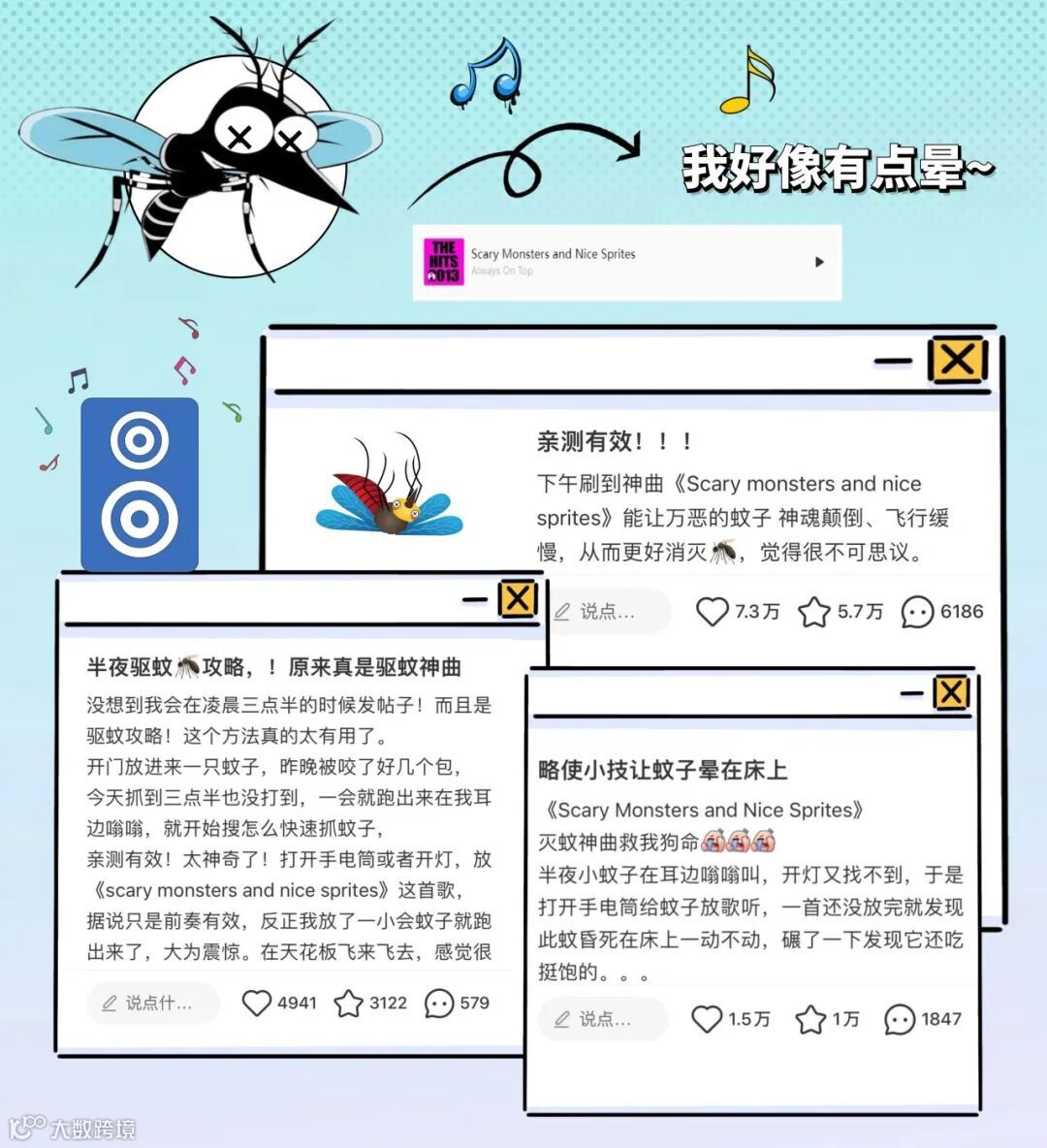 春季蚊虫疯狂肆虐,一场另类的"人蚊大战"正在年轻人中悄然流行——他们不再挥舞电蚊拍,而是对着手机外放神曲《Scary Monsters and Nice Sprites》。