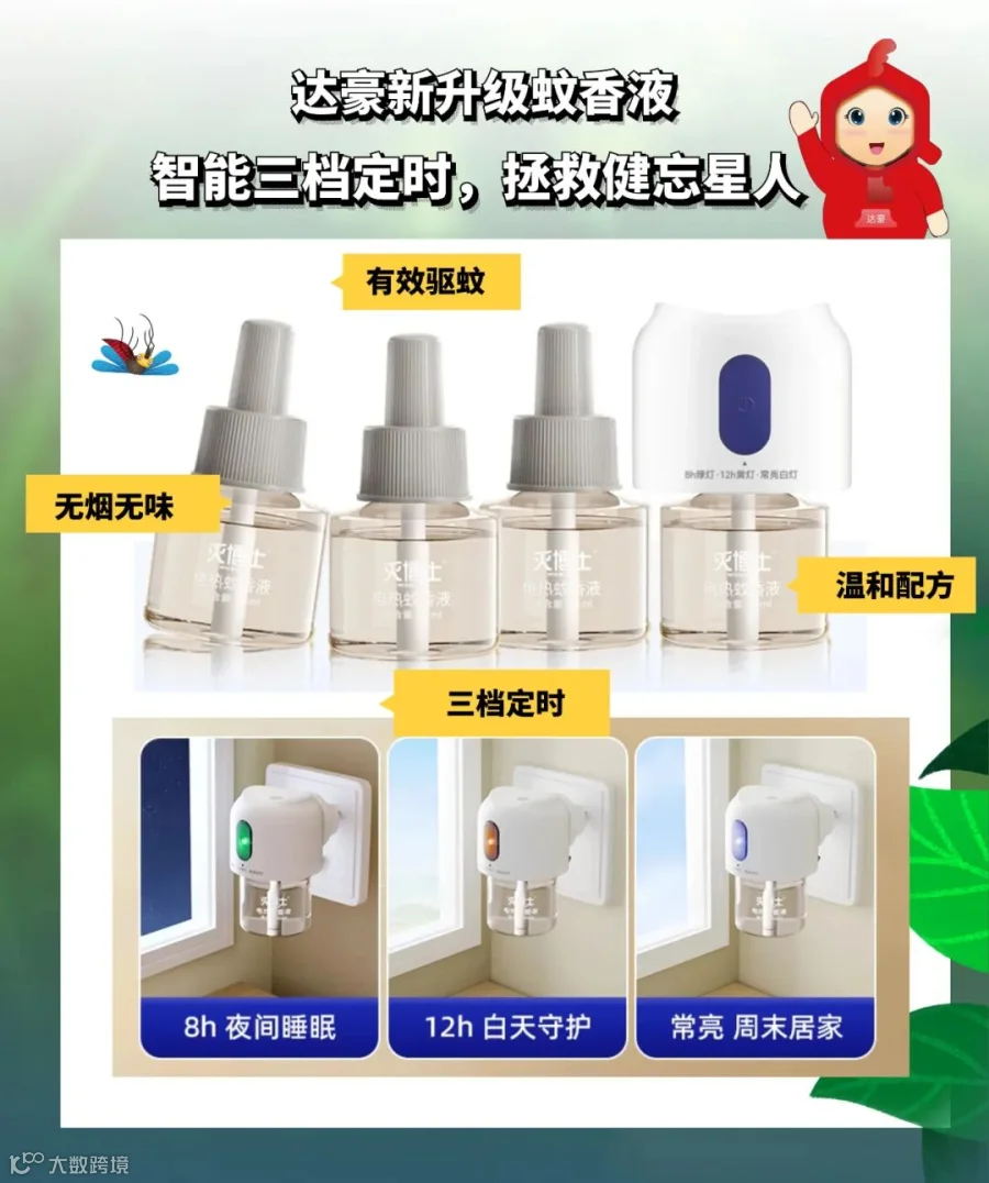 黎明/黄昏狙击:达豪蚊香液提前30分钟开启,快速实现对蚊子的驱捕。