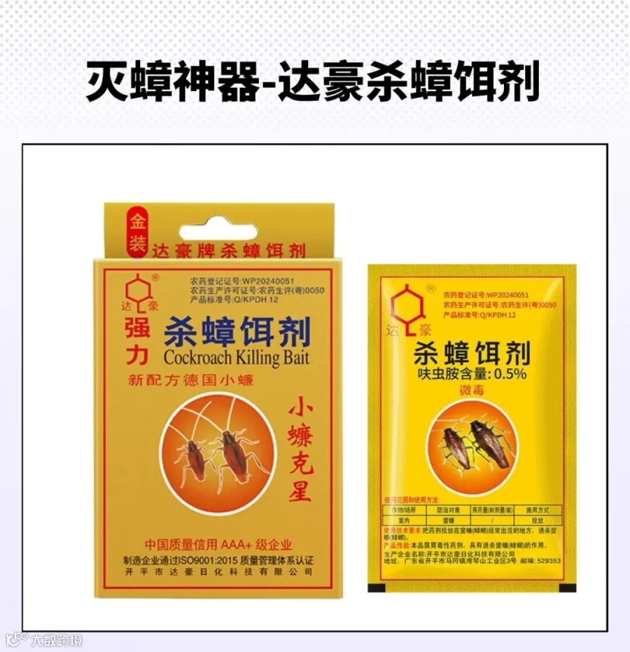 达豪杀蟑饵剂,相比于喷雾剂的灭杀速度快,杀蟑饵剂的杀伤力似乎要温和些,不能让蟑螂迅速致死,但是,它却能够进入蟑螂的老巢,从内部开始瓦解,让蟑螂死于互食,达到一窝端的效果,从根源解决蟑螂问题,避免蟑螂反反复复出现。粉剂状,具有淡淡的奶香味,更能吸引蟑螂取食,方便实用,灭蟑效果看得见!