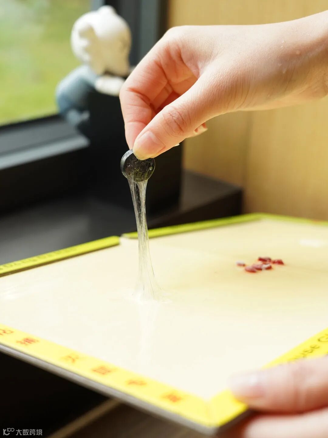 ②纽扣拿掉后,合上粘鼠板用力挤压,然后双手使劲撕开,使胶水充分拉丝。冬季胶水黏性会降低,这样做可以使胶水更具黏性,这样捕鼠才牢固。