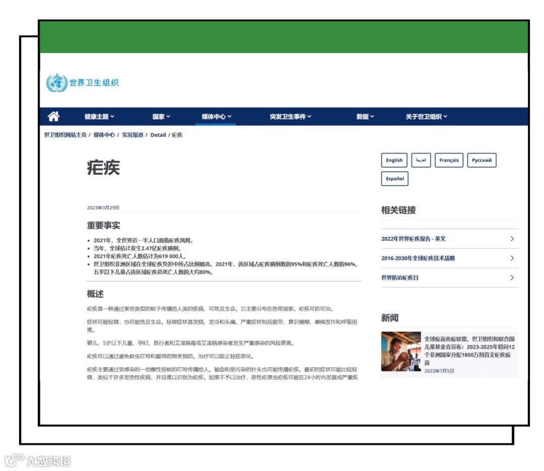 据世卫组织数据,2020年全球估计约有2.41亿疟疾病例,因疟疾死亡人数估计62.7万人。
