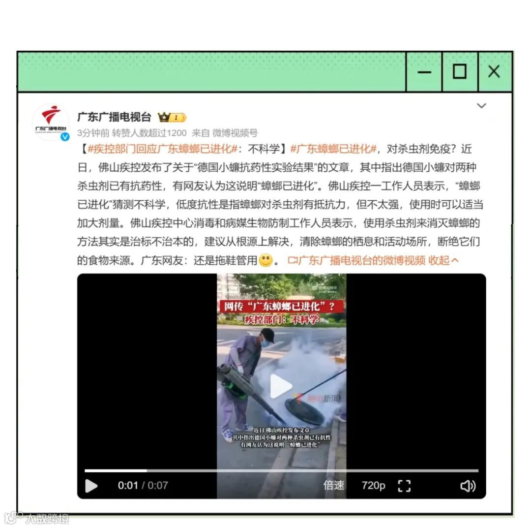 别担心,蟑螂难杀是真的,但是“进化”并没有依据。10月12日佛山疾控中心消毒和病媒生物防制科的一位工作人员就表示“蟑螂已进化”猜测不科学。