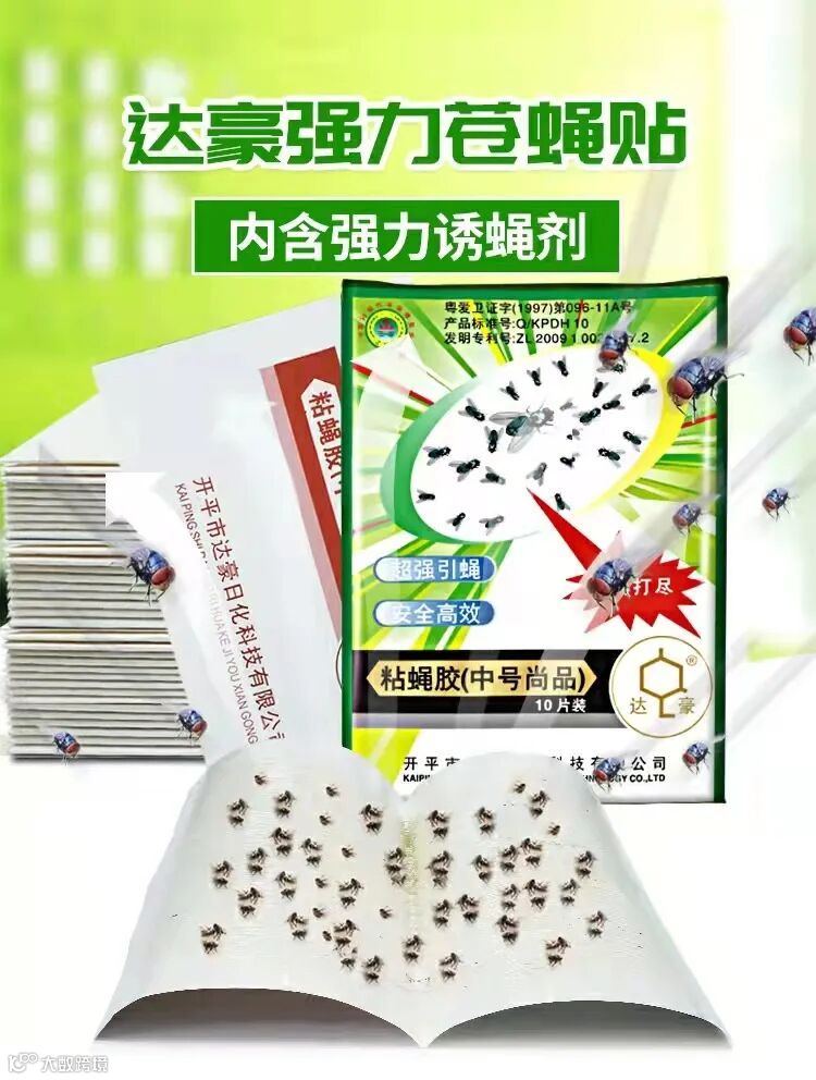 还可以使用物理灭蝇方法——达豪强力苍蝇贴,安全高效!自带引诱神器,苍蝇统统落网。