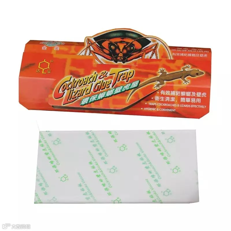 蟑螂屋使用方法:将防粘纸撕掉,在粘胶纸板中央放一小块甜面包或其它食物,将此粘胶纸板放入纸盒中。蟑螂闯入盒内就被粘牢,无法逃脱。蟑螂粘胶不含杀虫剂,对人畜无害。