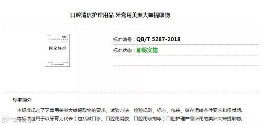 在今年7月份,国家工信部批准了一项《口腔清洁护理用品 - 牙膏用美洲大蠊提取物的标准》。