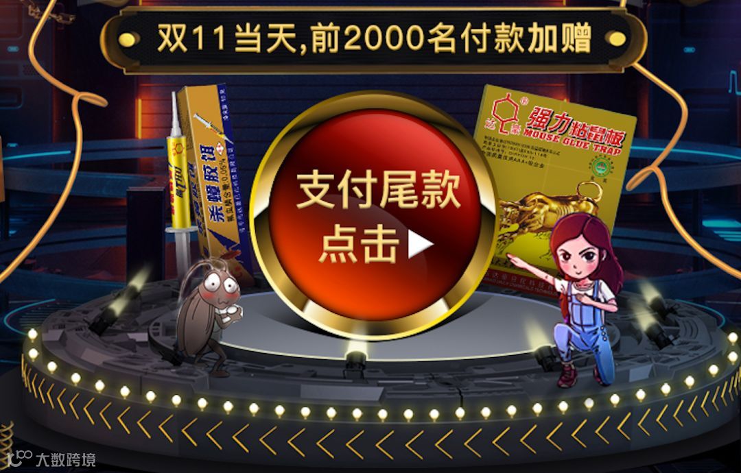 双11当天,前2000名付款订单,加赠杀蟑胶饵10克*1支,大金牛粘鼠板60克胶水*1张 (包括付尾款的订单)