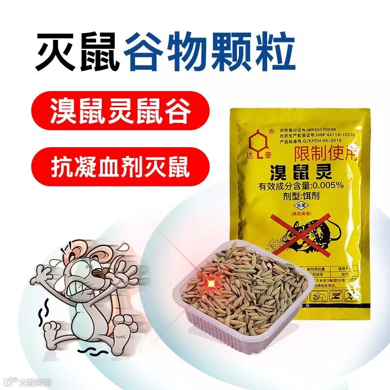 达豪溴鼠灵鼠谷采用抗凝血剂灭鼠新技术,您可以在老鼠出没地投放,药物自带引诱,老鼠吃后极度口渴,离开车子寻找水源,越喝水中毒越深,最后会死在水源地。