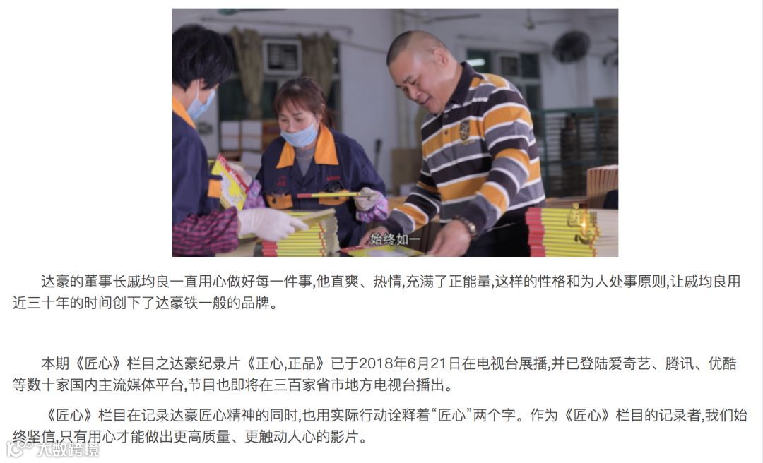 央视《匠心》栏目走进达豪 - 正心,正品