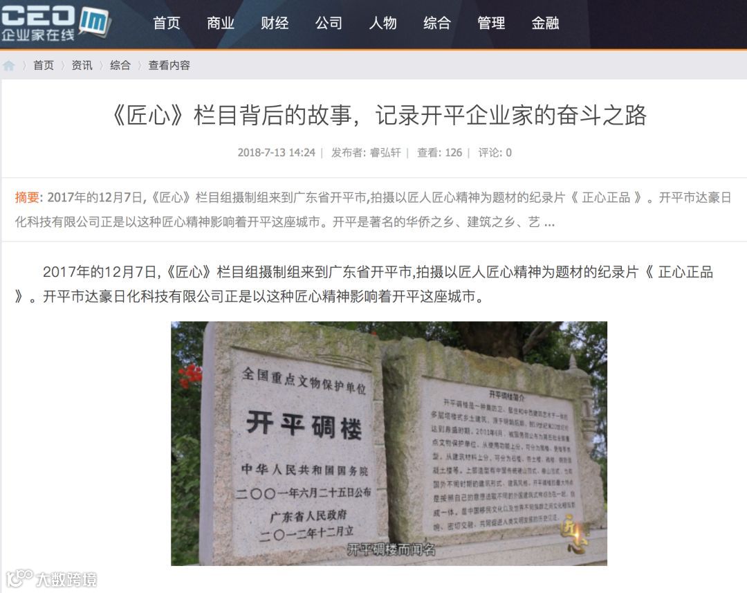 企业家在线网、中国商业资讯网同时报道了开平企业家戚均良的奋斗之路和拍摄花絮,想了解更多,可点击图片跳转原文或观看视频《达豪 - 正心,正品》~
