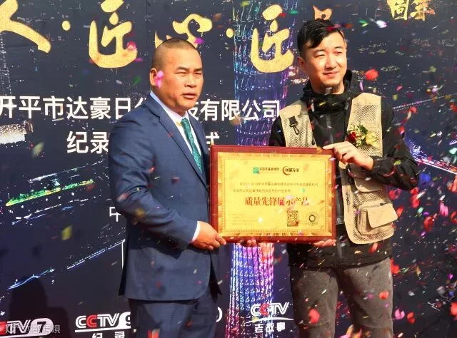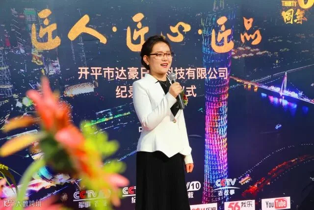 戚均良董事长表示,他非常感激央视老故事《匠心》栏目组对达豪的肯定,跬步千里,必为匠心。在开平市达豪科技有限公司创立的30年来,感恩达豪的合作伙伴和每一位员工让达豪的市场影响力不断壮大,让世界爱上这个民族品牌。