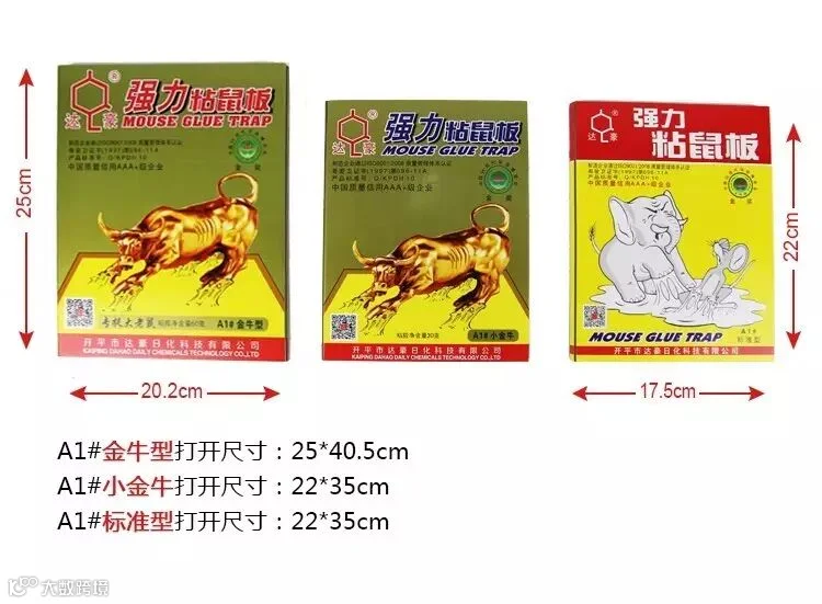 (3)生物引诱剂,诱惑力强,安全卫生,无毒。适用于餐厅、食品仓库等不宜使用药物灭鼠的环境。科学设计,大金牛尺寸比平时大1.5倍,可把胶纸合拢后再拉开任意折叠。