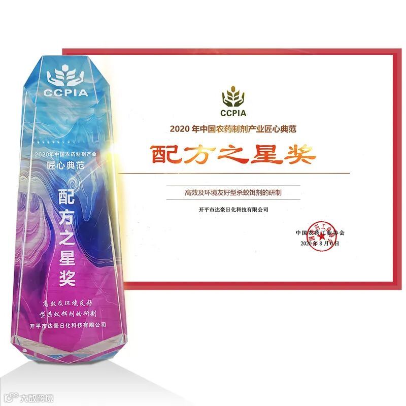 热烈祝贺达豪红火蚁杀蚁饵剂被中国农药工业协会评选为《2020年中国农药制剂产业匠心典范——配方之星》。