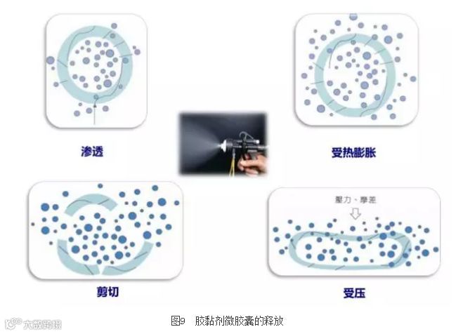 胶粘剂微胶囊的释放有渗透、受热膨胀、剪切和受压等方式。